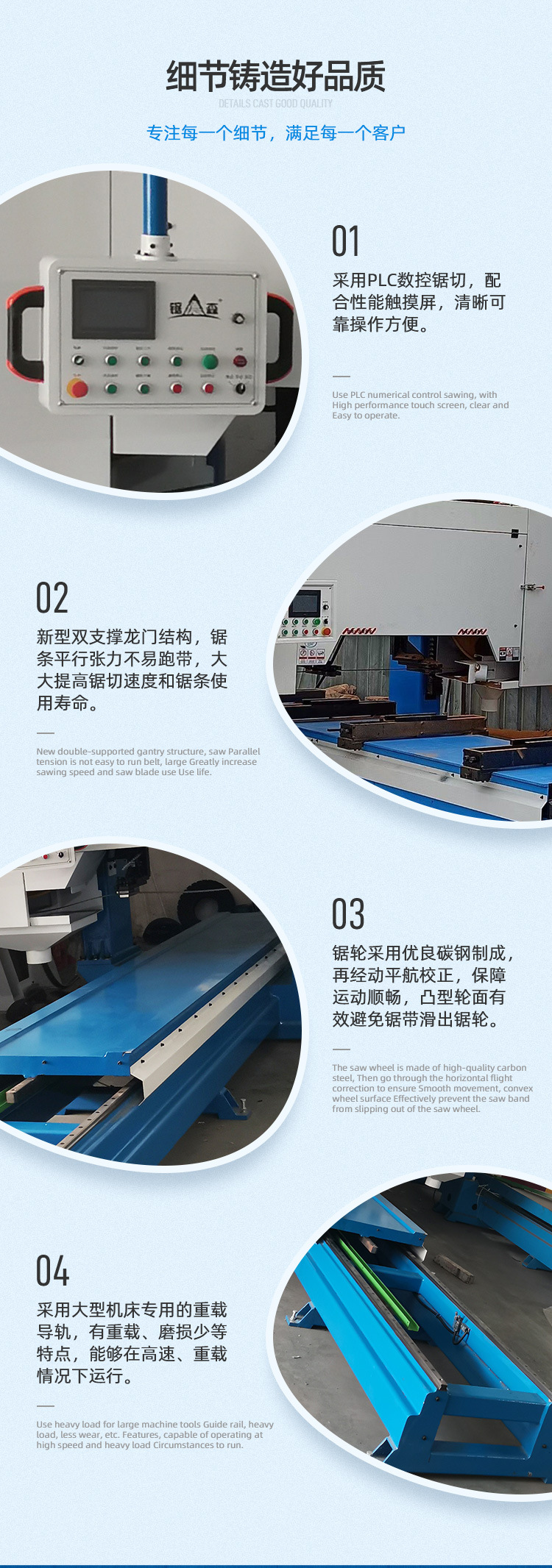 ②:升(sheng)降絲杆:M40×20型号(hao),品牌:德國力(lì)士 ③:司服電機(ji):惠川3.7KW/2台 ④:帶鋸(jù)輪軸承:SKF,2013型号(hao)/4個,品牌:德國(guo) ⑤:減速機品牌(pai):廣東傑豐 ⑥:PALC品(pin)牌:惠川 ⑦:觸摸(mo)屏品牌:7寸,惠(huì)川 |